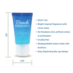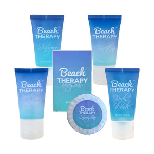 Bring the beach to your bathroom with our luxury Beach Therapy hotel toiletries collection. Guests will love the easy dispensing tubes, vibrant blue and turquoise packaging, and luxurious ingredients. Scented with a bright tropical fragrance with citrus notes, these upscale hotel size soaps and amenities are sure to please even the most discerning guests.