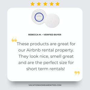 These products are great for our AirBnB rental property. They look nice, smell great and are the perfect size for short term rentals!