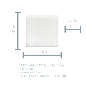 R&R Retreat sachet wrapped hotel soaps make it easy to provide your guests with a luxurious hotel size soap for their stay. Individually wrapped in a plastic sachet, these 1 oz small soaps make a nice presentation by the sink or in the shower for those shorter guest stays. Guests will love the refreshing grapefruit & bergamot fragrance blend in this small bar of soap and hosts will love the price. Stock up on these mini soap bars today!