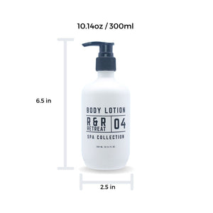 Retreat matte white bottles are filled with our luxurious body lotion and topped with a convenient pump dispenser. Refillable and thoughtfully designed, they offer an eco-conscious choice for elevated guest care.
