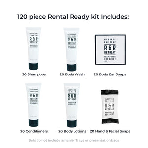 The 120pc Rental Ready Kit supplies all the bath toiletries you need to get your property ready for rental guests: